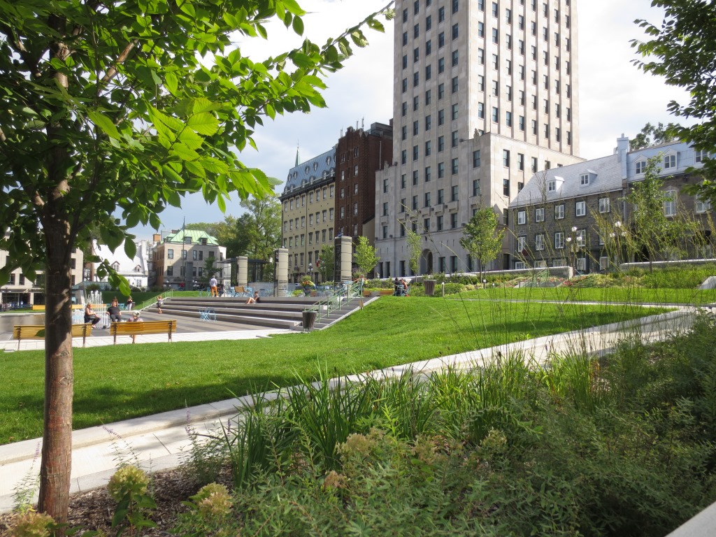 • Possibilité d'intégrer divers aménagements durs, comme du mobilier urbain et des jeux d'eau, etc.