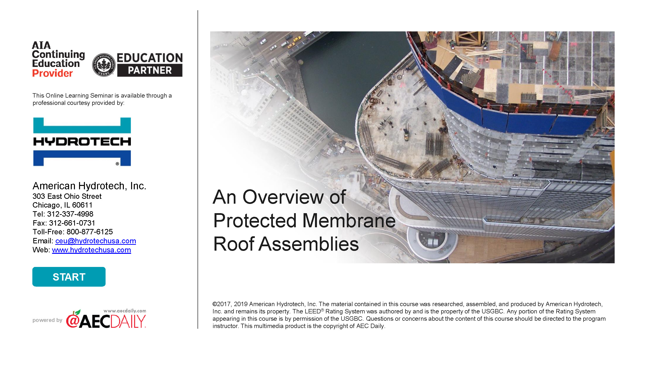 Hydrotech est heureux de pouvoir offrir aux architectes, rédacteurs de devis, architectes paysagistes, professionnels de la conception LEED et autres des crédits de formation continue.