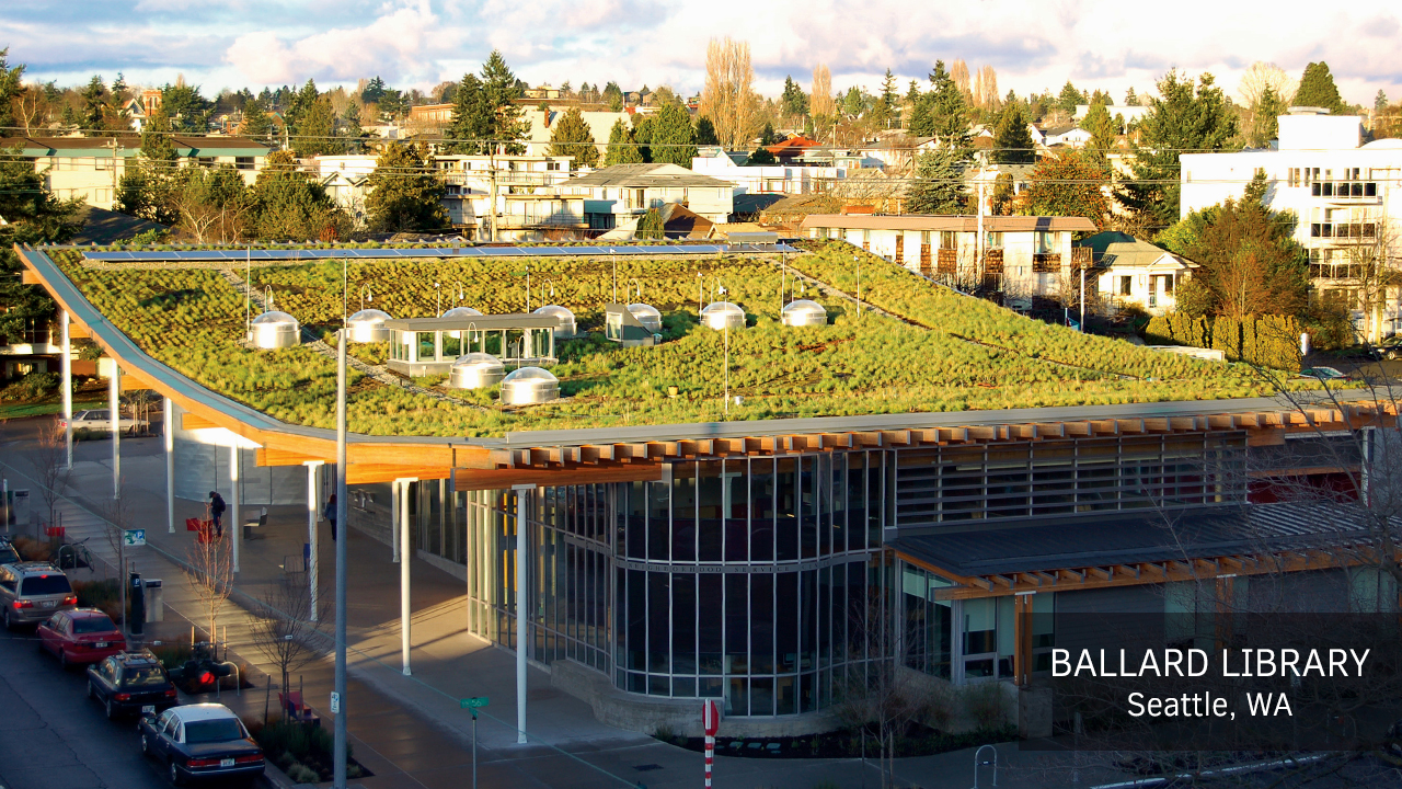 Libraries are traditionally stark repositories of knowledge. Installing a green roof was an opportunity to generate community interest in green design to make this facility a dynamic teaching tool for ustainable design and environmental awareness.