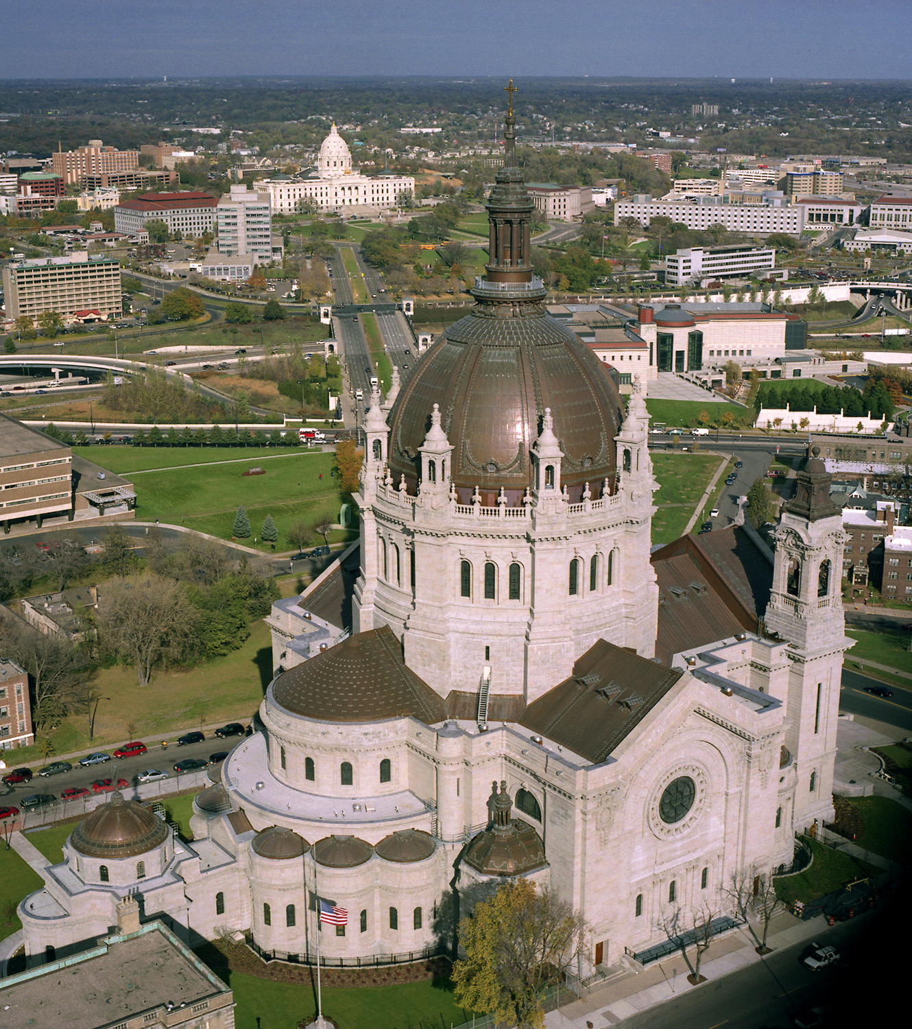 St. Paul's was built in the early 1900s, designed in the Classical Renaissance style and adapted from the original plan of St. Peter's Basilica in Rome. After 86 years, its 175-foot tall copper dome and other roof areas needed complete restoration, including the lower transept roofs, which had been retrofitted repeatedly over the years due to ice falling from the dome and damaging the lower flat roofs.