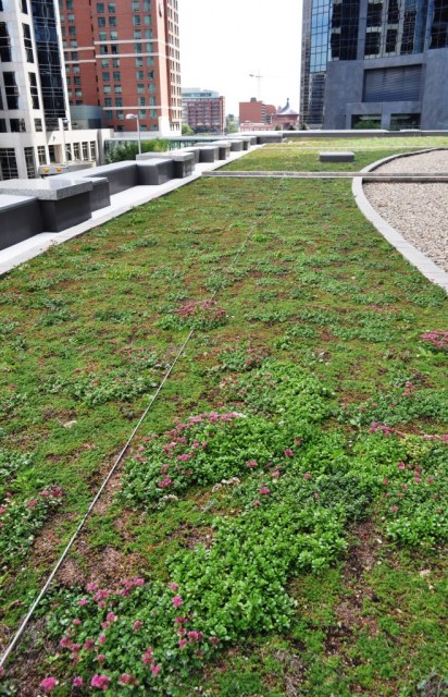 Extensive vegetative roof done with the Instagreen sedum carpet.