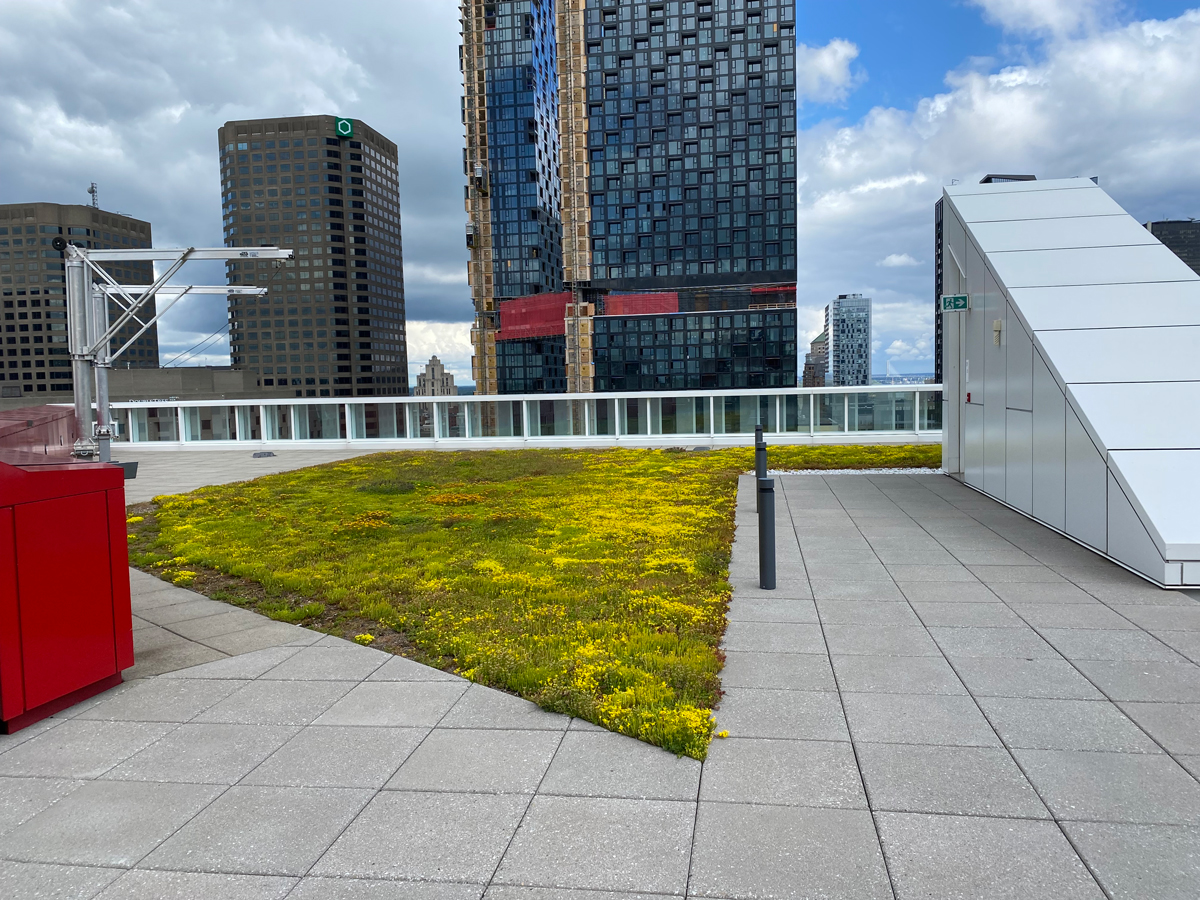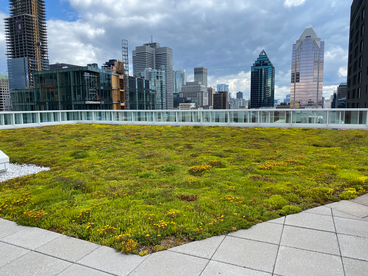 Sur l'élévation sud-ouest de l'Îlot Balmoral sied une toiture végétale à 56 mètres de hauteur. La membrane monolithique 6125 (MM6125®) a été utilisée pour imperméabiliser 1 435 mètres carrés sur lesquels le système d’assemblage Garden Roof extensif de 525 mètres carrés est installé. Le Garden Roof d'Hydrotech consiste en des composantes éprouvées à partir de la structure de bâtiment jusqu'à la surface finie; membrane d'imperméabilisation/de toiture, isolant rigide, pavé architectural, composantes de toiture végétale, substrat de croissance et végétation pour applications extensives.